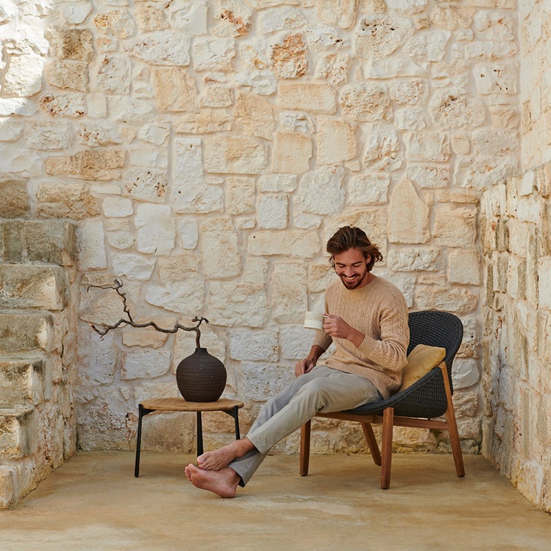 Tricord® ist ein speziell für Tribù entwickeltes Verbundmaterial. Der innere Kern des Gewebes besteht aus bruchfesten Polyesterfasern, die für Festigkeit und Stabilität sorgen. Die Außenseite besteht aus einer Kombination von nautischen Fasern (Polyolefin), die dem Material ein natürliches Gefühl sowie eine natürliche Ausstrahlung verleihen. Diese Zusammensetzung macht Tricord® völlig resistent gegen äußere Einflüsse sowie frost-, wasser-, schimmel- und UV-beständig.