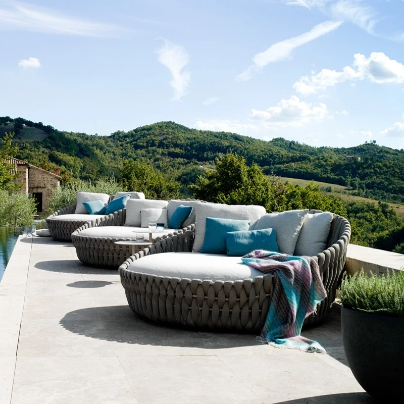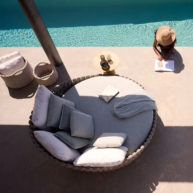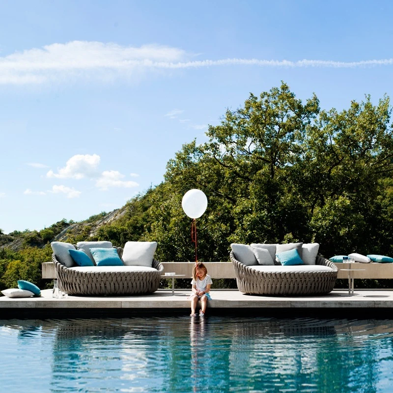 Inkl. wetterfester Polsterauflage mit Bezug aus der Tribù Stoffkollektion